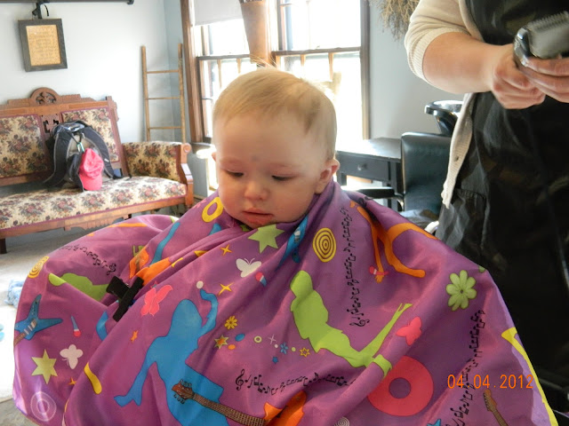 He's only 7 months old here...WHY is he getting his hair cut? Because I LOVE boys and short hair. Although it's true, that's not really the reason I chose to shave his beautiful locks. I never would have shaved his hair if he wasn't scheduled for an EEG two days later. Brady has been having some episodes of 'head drops' that are suspicious, so to rule them out, he'll be having some testing done. If you've ever experienced an EEG, it involves a lot of gooey substance that helps the leads stick to your head. The easy part is putting them on, the hard part is pulling them out of your hair. SO...to spare Brady of that pain, I had LL shave his head.